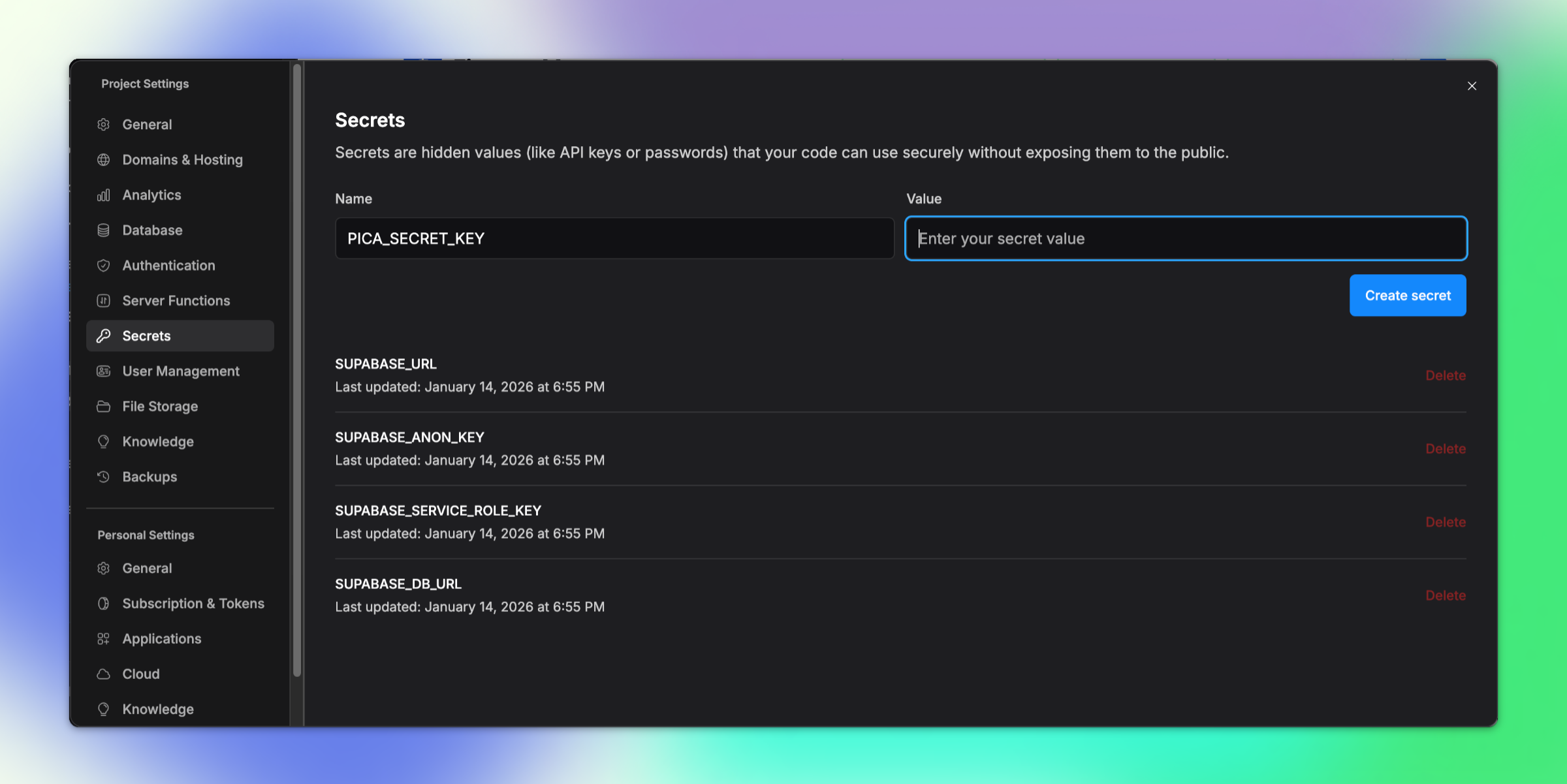 1. PICA_SECRET_KEY