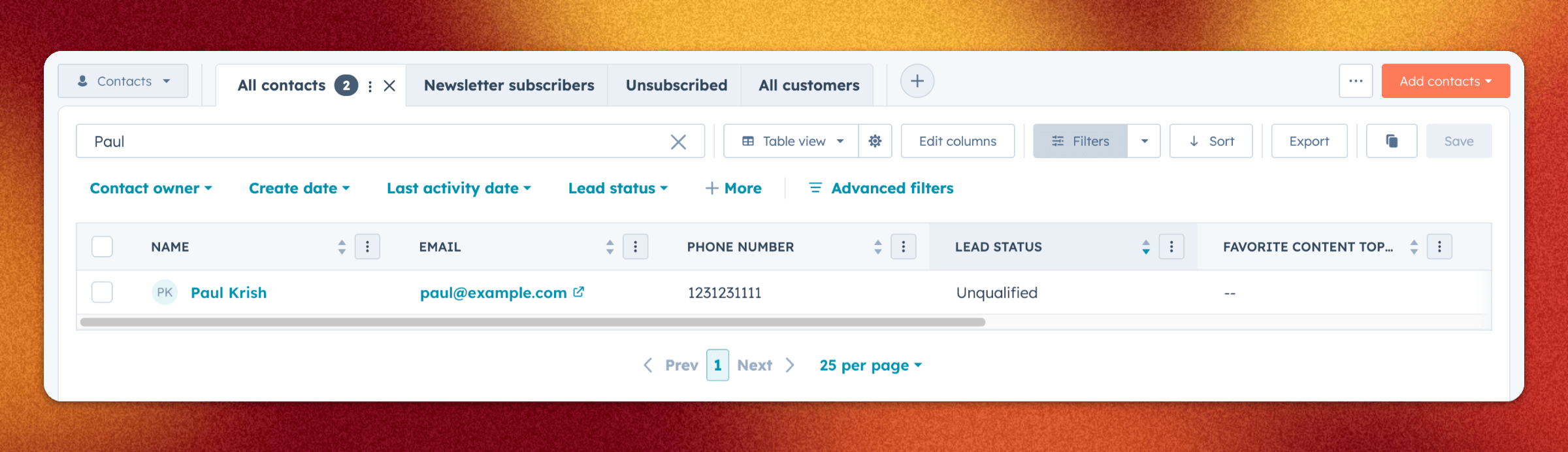Test your lead magnet by filling out the form. You should see new contacts appear in your HubSpot CRM immediately with the status set to Unqualified 🚀